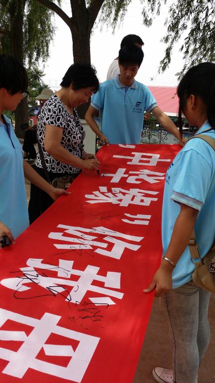 上午10点,分队成员在郑州火车站集合,由队长召开简短会议分配工作任务,主要分为三个小组:第一小组负责问卷调查工作;第二小组负责“黄河源中华缘”保卫母亲河签字活动的工作;第三小组负责拍照记录工作。队员们于11点向黄河游览区出发。到达目的地后,队员们按照事先的分工开展调研工作。活动开始,问卷调查小组对游览景区游客展开了“保卫母亲河”问卷调查,目的在于了解广大群众对黄河现状的看法及对环境保护的意识。在问卷调查活动开展的同时,第二小组成员也开展了保卫母亲河签字活动。调研活动使队员们意识到保护黄河母亲河的重要性。