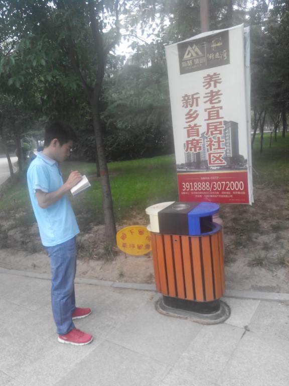 为调查周边社区、街道、公园、办公大楼的垃圾桶设立以及合理性情况,6月28日,青年志愿者联合会一行5人展开了对新乡市周边社区及居民小区垃圾桶的分布调研社会实践。