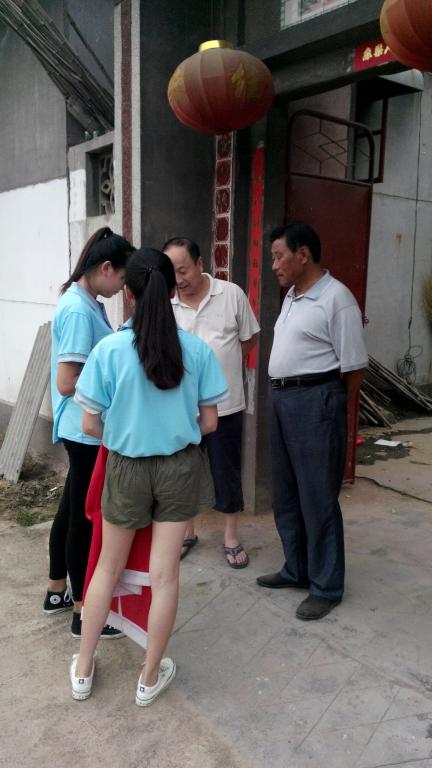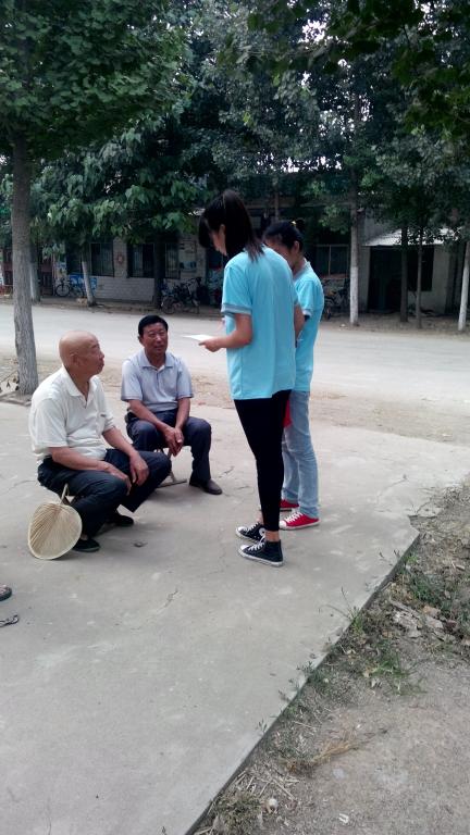 早上七点半,同学们带着之前整理好的材料坐上了通往粉店村的公交车。到达粉店村后,在当地村民的带领之下来到了粉店村的村委会,当村长看到同学们拿着写有科技支农的旗子笑容满面的接待了同学们。之后同学们和村长详细地介绍了此次来的目的以及计划,村长听完之后,表示会大力支持同学们的工作并且配合活动在当地做好宣传工作。在听解了村长的对村子近几年农业生产的介绍以及一些生产的经验和同学们在与当地村民的交流中,发现主要问题不是出现在作物的好坏上,而是出现在品种问题、种植效率问题、收获效率问题和销售问题上。