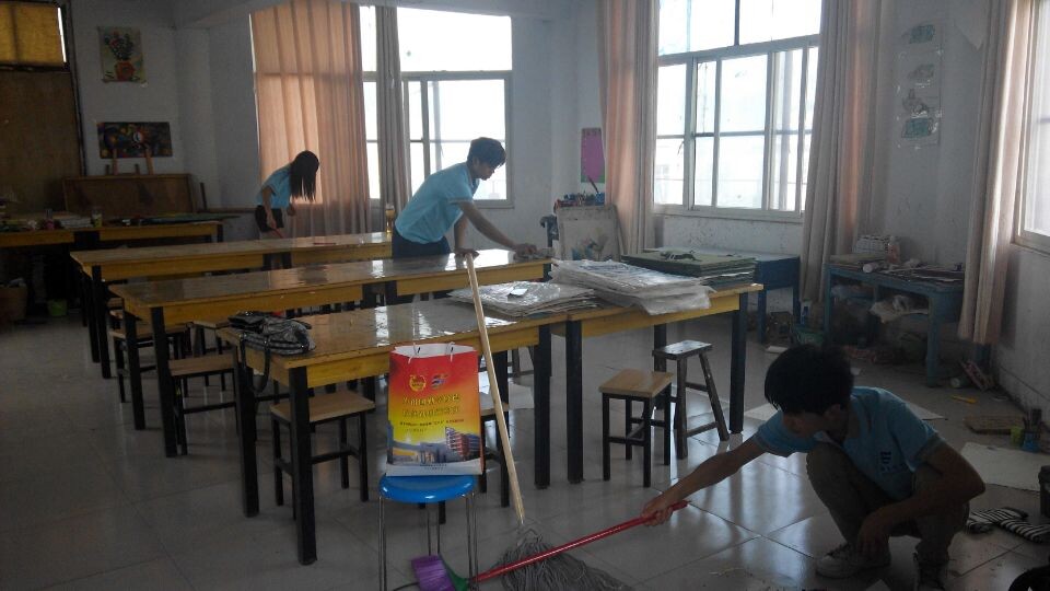 在上午到达原阳县艺术学院后,队员们未做休息在与老师亲切交谈后积极投入到活动工作当中。在当了解到学校因为暑假放假缘故人手不足,可能影响儿童开学教育的情况后,同学们便自告奋勇的帮助学校完成教室课桌摆放整理工作,并且还主动打扫教室和学生宿舍为即将到来就读的儿童努力提供一个干净舒适的学习和睡眠环境。帮助前来考察的学生家长了解学校,并帮助组织了学生家长学前体验活动,让家长和学生更加深入的了解学校的教育情况,这项活动赢得了家长和学生的好评。在下午的时候,团队成功圆满的完成了今天的社会实践活动,并一一和老师学生告别,答应有机会会参加类似的社会活动。