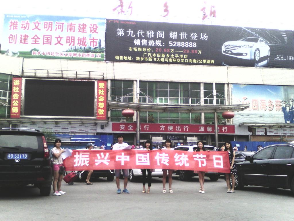 为了带动更多的人来关注中华民族的传统节日,学习其表达的思想内涵,7月1日,历史系赴各地振兴传统节日暑期实践团来到新乡市进行实践调查活动,问卷调查地点分别是新乡火车站和新乡步行街。