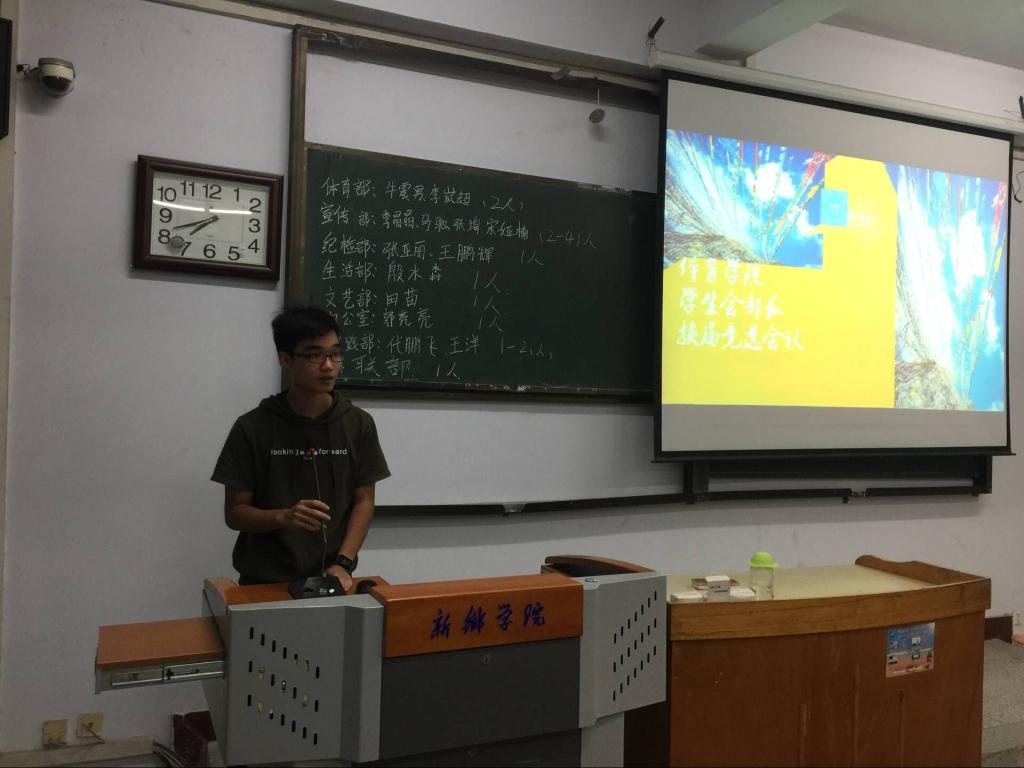 体育学院学生会于9月21日在A11-119教室开展学生会主席团第七届换届竞选会议。党总支副书记王海燕老师,团总支书记孟杰老师,14级辅导员冯毛弟老师,15级辅导员王一夫老师均莅临到场。