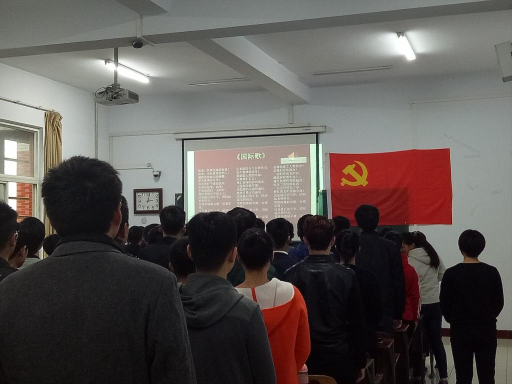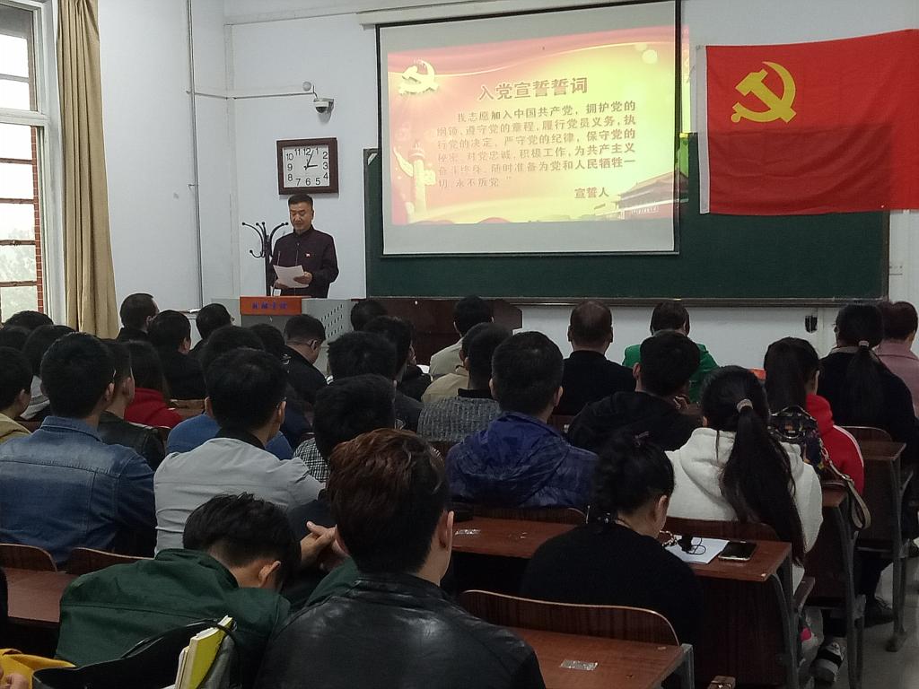 此次大会由杜川老师主持,大会共有两项议程。第一项议程是党员宣誓暨重温入党誓词大会,首先全体起立奏国际歌并由王保学老师宣读党员名单,接着全体党员在杨松老师的领誓下宣读入党誓词。然后由新发展党员代表赵绮超同学、老党员代表靳文雨同学以及入党积极分子贺钰杰同学依次发言。最后赵素琴老师、方如磊老师依次发表讲话。第二项议程是“青春喜迎十九大,不忘初心跟党走”党员征文表彰大会,在全体起立奏唱国歌之后,由李中琴老师宣布征文比赛获奖名单,为获奖人员颁发证书并合影留念。