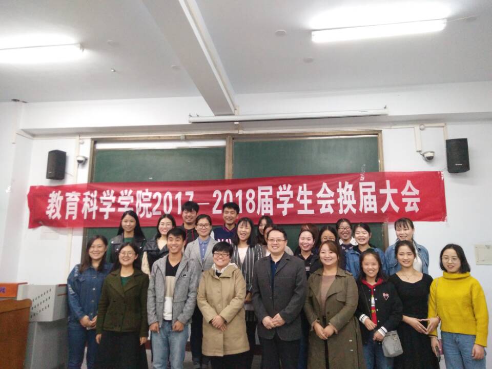 10月16日晚上七点,教育科学学院于A11-313教室成功举行2017-2018届学生会换届大会。出席此次大会的领导老师有院党总支副书记田亮老师、团总支副书记王敏老师,教育科学学院全体学生干部参与此次换届大会。