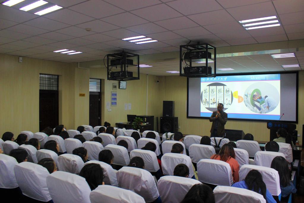 为强化同学们对知识的运用,提高同学们的翻译能力,10月31日下午14:30,武汉轻工大学张万防副教授应外国语学院热情邀请,在A07-501教室为15、16级翻译专业学生进行了一场生动的翻译学讲座。副院长鲁静主持此次活动。