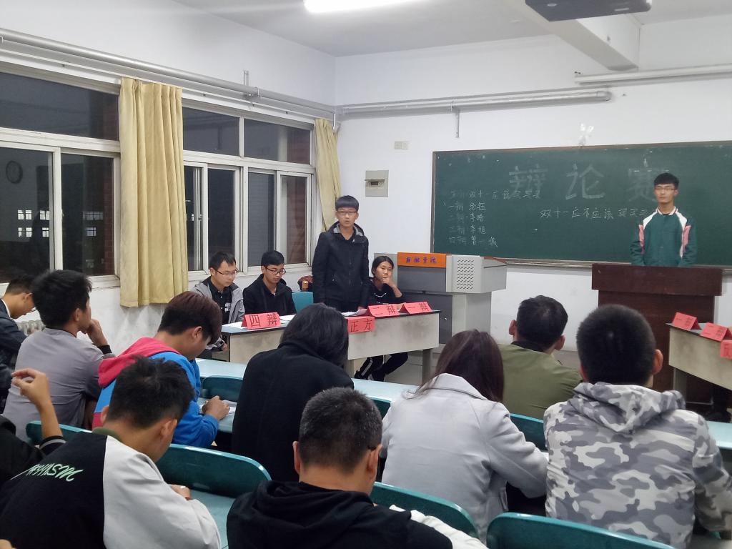 为了丰富大学生的课余生活,锻炼同学们的思维表达能力和语言组织能力,11月3日,机电工程学院于A06-608教室举行了第三次新生辩论小组赛,参加此次比赛的有各班级辩手。