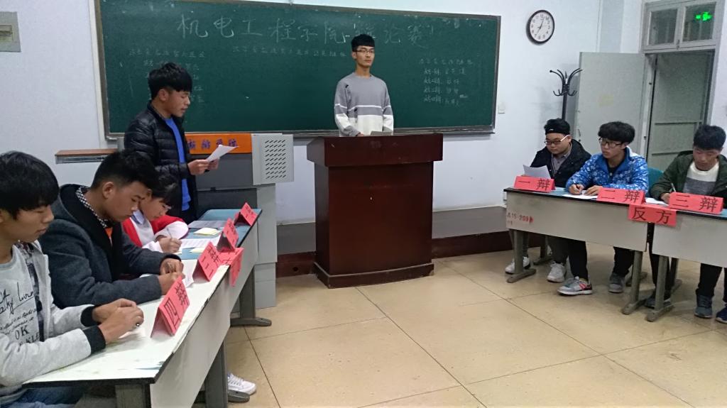 机电工程学院于11月21日晚七点在A06-608举行了新生辩论赛半决赛。此次辩论赛由学习部王世玖同学主持,学生会各部长担任评委。