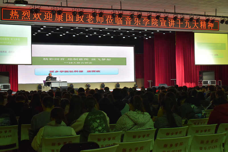 11月21日,按照学校党委统一部署,音乐学院十九大精神宣讲报告会在我校多功能厅举行,我校社会科学部副教授康国政老师作宣讲报告。音乐学院党总支书记陈华,副院长杨媛媛出席报告会,会议由院总支副书记梁田主持。音乐学院400余名师生聆听了宣讲。