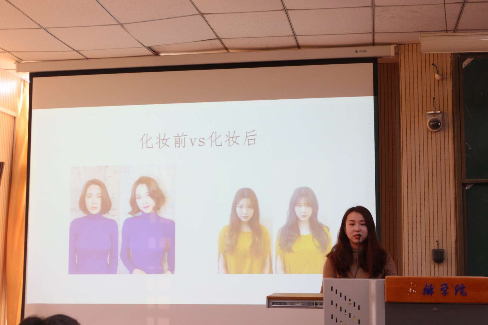 新闻传播学院于3月13日下午2:30在A05-105教室成功举行“春风十里不如你”女生日常化妆知识讲座。此次活动由“优娑”照相馆的王晓彤老师担任主讲,新闻传播学院近300余名学生参加。