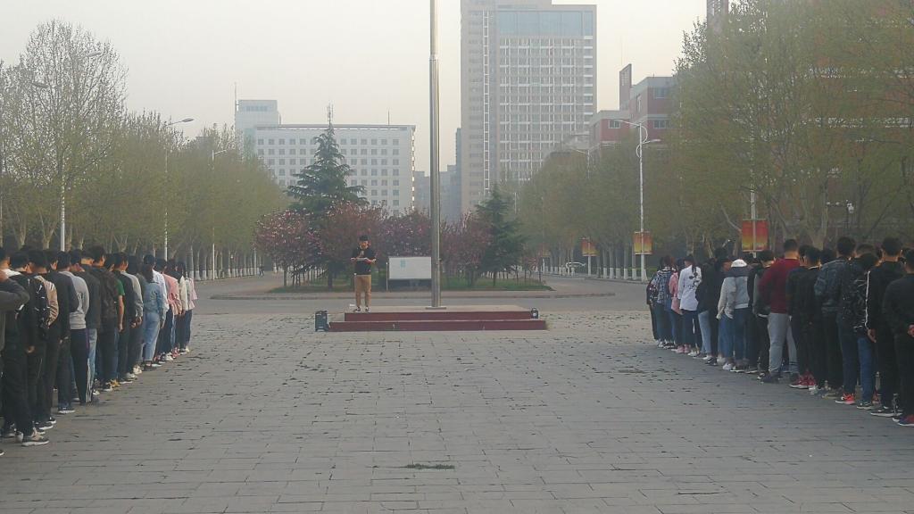 升旗仪式于6:50准时开始,国旗护卫队的旗手们,以饱满的热情昂首挺胸,护卫着五星红旗来到旗杆下。当雄壮有力的《义勇军进行曲》响彻整个校园时,全体师生集体行注目礼,全场弥漫着庄严肃穆的气息。鲜艳的五星红旗冉冉升起,激发了所有同学不断向上的斗志,点燃了在场所有人的爱国激情。升旗完毕后,由17级学生代表郭富强同学和国旗护卫队代表张怡凯同学依次上台进行国旗下讲话。郭富强同学以“志存高远”为主题的发言阐述了作为一个优秀的大学生应胸怀大志.才有前进的动力和方向.才能够心系祖国,严格要求自己。张怡凯同学则是以“勇于担当责任.做文明大学生”的演讲体现了当代大学生应当勇于担当责任.培养高尚的道德品质。