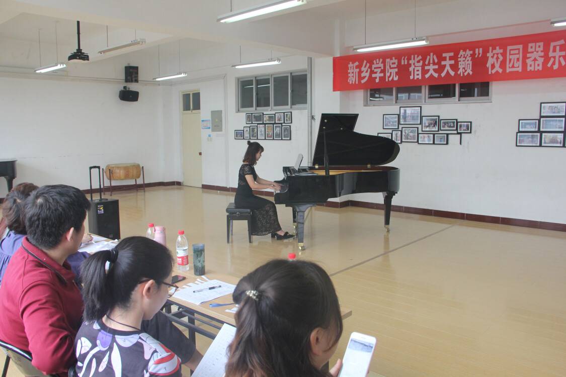 为深入学习宣传贯彻习近平新时代中国特色社会主义思想和党的十九大精神,选拔优秀人才,由新乡学院校团委主办、音乐学院承办的新乡学院第五届大学生科技文化艺术节“指尖天籁”校园器乐大赛于4月24日下午三点,在A04-404隆重举行,来自各学院的20余位选手近10种乐器间展开激烈的角逐。音乐学院党总支书记陈华老师、校团委副书记田文强老师以及音乐学院的师生共同观看了此次比赛,评委由音乐学院的专业老师担任。