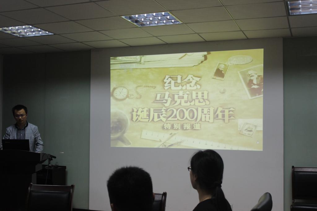 首先,文老师带领大家观看了中央电视台关于“纪念马克思诞辰二百周年大会”的新闻报道,就为什么纪念马克思主义做了深入学习。一方面马克思主义是立党立国的根本,是长河之源,真理之巅,另一方面如今我们给马克思主义赋予了新的时代内涵。纪念马克思主义是我们的光荣与责任。大家纷纷表示要坚决拥护党的领导,坚定共产主义信仰,认真学习马克思主义,不忘初心,牢记使命。