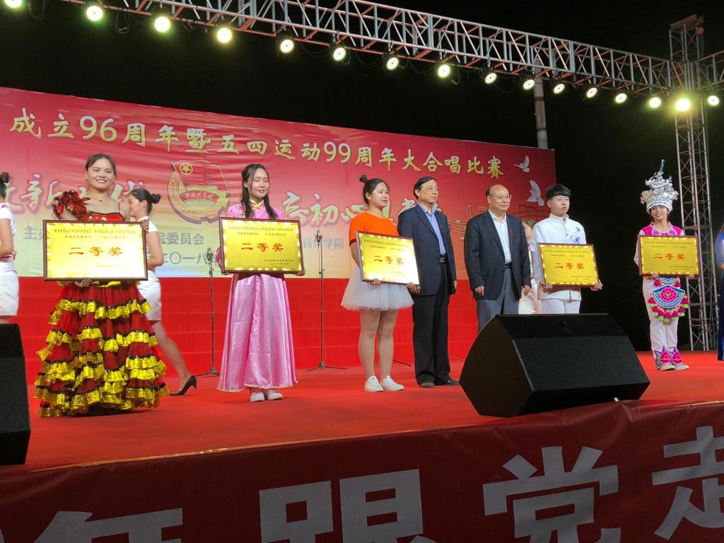 “五四”大合唱的准备工作已经有序开展了半个多月,在这段时间里历史与社会发展学院的同学们利用课余时间精心准备,积极排练。在团总支书记周岩老师的指导下和学生会干部们的带领下,同学们熟练的掌握了歌词和歌曲的旋律节奏,向全校师生展现了历史与社会发展学院积极向上的精神面貌。比赛期间台上的同学们热情饱满、声音洪亮,台下的观众们掌声不断,将现场氛围推向高潮。其中历史与社会发展学院演唱的俄罗斯歌曲《卡林卡》以欢快高昂的节奏、独特的合唱形式以及同学们优美的舞姿深深地感染了在场的观众,获得了此次比赛二等奖。