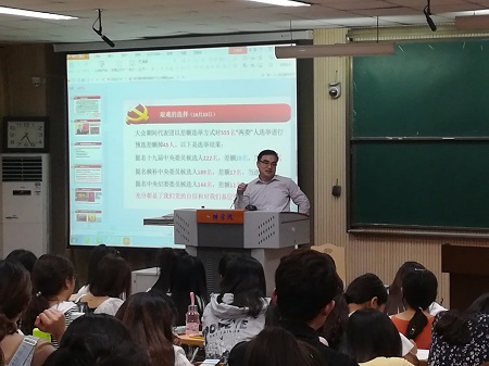 汪如磊老师从三个版块对党的十九大报告进行解读。他认为党的十九大是一次非常重要的会议,同时也总结出学习十九大精神要从总体上把握好三点。一是把握好“不忘初心,牢记使命,高举中国特色社会主义伟大旗帜”的大会主题,二是把握好大会的政治、理论、实践等各个方面的重要成果,三是把握好大会的主要精神和历史贡献。汪老师条理清晰的一一进行分析,在座的各位同学专心听讲,认真做笔记。课后,同学们纷纷表示经过此次党课培训受益匪浅,对党的十九大有了更透彻的了解,并会努力学习党的知识,积极向党组织靠拢。至此,党课第二讲圆满结束。