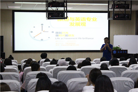 为强化旅游英语专业学生知识素养,树立合理的就业规划目标,外国语学院邀请上海师范大学旅游学院姚明广教授于5月6日在A07-501来进行以“旅游英语考研与就业”为主题的讲座。外国语学院2015级、2016级旅游英语专业全体学生到现场听讲。