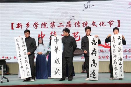 为了让同学们充分了解中华传统才艺,给校园中的传统文化爱好者提供展示平台,新乡学院第二届传统文化节中华才艺展于5月9日晚7点30分在西区音乐厅成功举行。此次活动由新乡学院团委主办,文学院、民乐协会、书法协会、茶艺协会、汉服社主办,百度百科俱乐部协办,文学院党总支书记郭明进、副书记黄远伟、副院长张青民、团总支书记徐甜、辅导老师王妍、夏泽天参加此次活动。