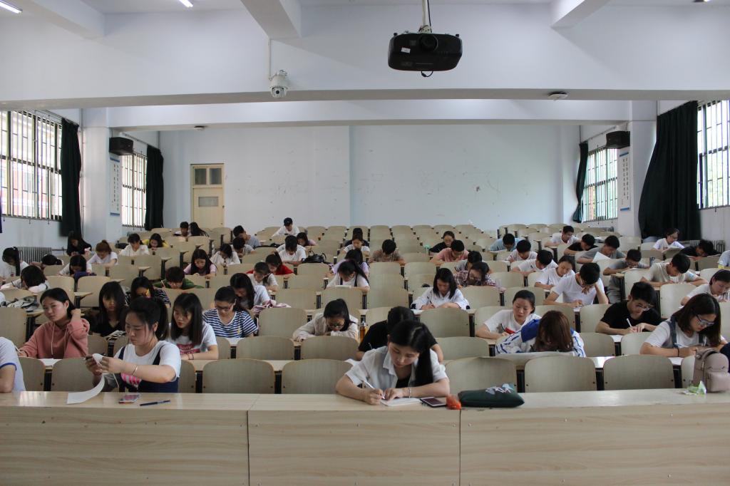 三点五十,入党积极分子和监考人员已全部到场。考试监管人员开始点名,并强调考场上不允许翻看手机、书本以及不允许做交头接耳等一系列与考试无关的动作,并告知如有违规则按作弊处理,要求考生在四点三十分之前,不得离开考场。试卷分发下去之后,考试正式开始。考生们奋笔直书,争分夺秒的去完成每一道题,监考员不敢懈怠,在考场巡视、严格监考。很快考场里便充满了卷子翻页的声音,考试结束时间还未到,许多考生已完成试卷,在做最后的审查。时间截止,考生交卷并有序的离开考场。