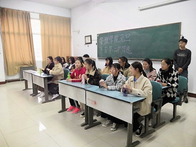 伴随着元旦晚会的号角声,节目彩排工作也在持续进行中,为进一步提高元旦晚会的节目质量,管理学院于11月18日下午3点半在A05-304成功进行元旦晚会节目第二次筛选。