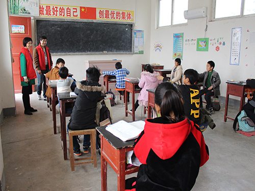 首先,志愿者们按照老师的分配到达指定教室,为学生们开展了手语、美术、戏曲三个课程。随后,数学与信息科学的老师们走进支教的队伍,分别对三年级和五年级的学生进行支教。窦曼老师在音乐课上教同学们唱《剪羊毛》,带领着他们走进了音乐的殿堂。庄乐森老师和王仁举老师的数学课生动活泼、通俗易懂,使每一位学生在轻松愉悦的课堂氛围中快速的掌握知识,增加对数学的兴趣。最后,全体志愿者与老师、学生们进行了合影留念。