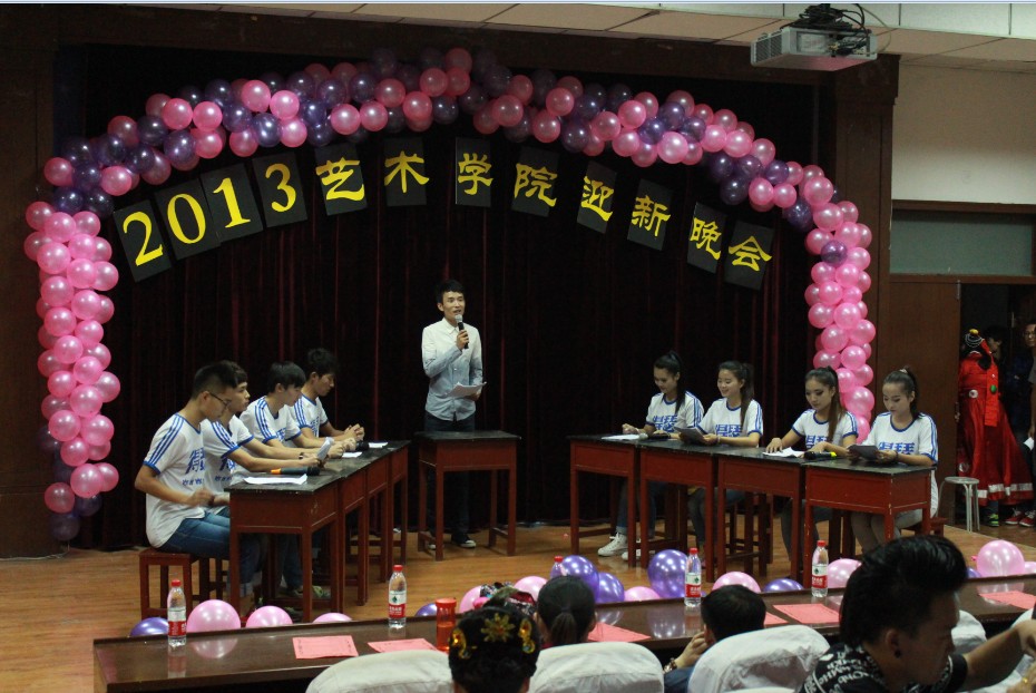 在金秋送爽、月桂飘香的美丽时节,艺术学院于9月23日晚在A-01号楼报告厅成功举办了2013年迎新晚会,艺术学院院长、副院长、书记及辅导员老师共同出席此次晚会。