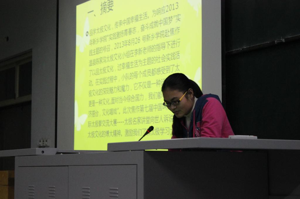 为认真总结活动经验,展示活动成果,10月22日晚,历史系在A01-0323举行了2013年暑期社会实践报告会,团总支学生会全体成员和2013级新生参加此次会议。报告会上,9支校级暑期社会实践团依次上台展示了各自的实践成果。各团队的实践活动内容丰富,涉及专业考察、教育帮扶、志愿服务等方面,如赴各地考察历史遗迹暑期社会实践团、赴濮阳教育帮扶暑期社会实践团、赴平原博物院志愿服务暑期社会实践团等;实践方式以实地考察、问卷调查为主,如赴各地文物保护考察调研暑期社会实践团、赴河南省博物院考察暑期社会实践团等。报告人通过图文并茂的方式向在场的同学生动形象的展示与讲解,并赢得了观众的肯定与阵阵掌声。