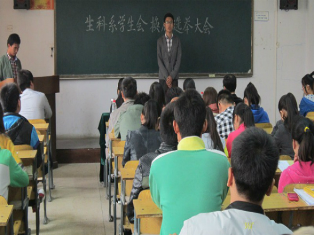 为了提高学生会干部的综合素质,为学生会注入新的力量,能够更好的为师生服务,生命科学与技术系的第七届学生会换届选举大会于10月22日下午两点在A—13—205教室举行。参加本次会议的有系团总支书记刘兴洋、11级辅导员陈丽丽老师、12级辅导员周会萍老师、13级辅导员王利平老师,大会由第六届学生会主席邢高功主持。