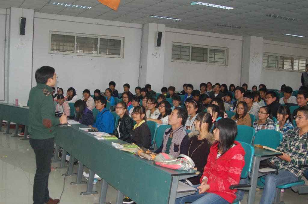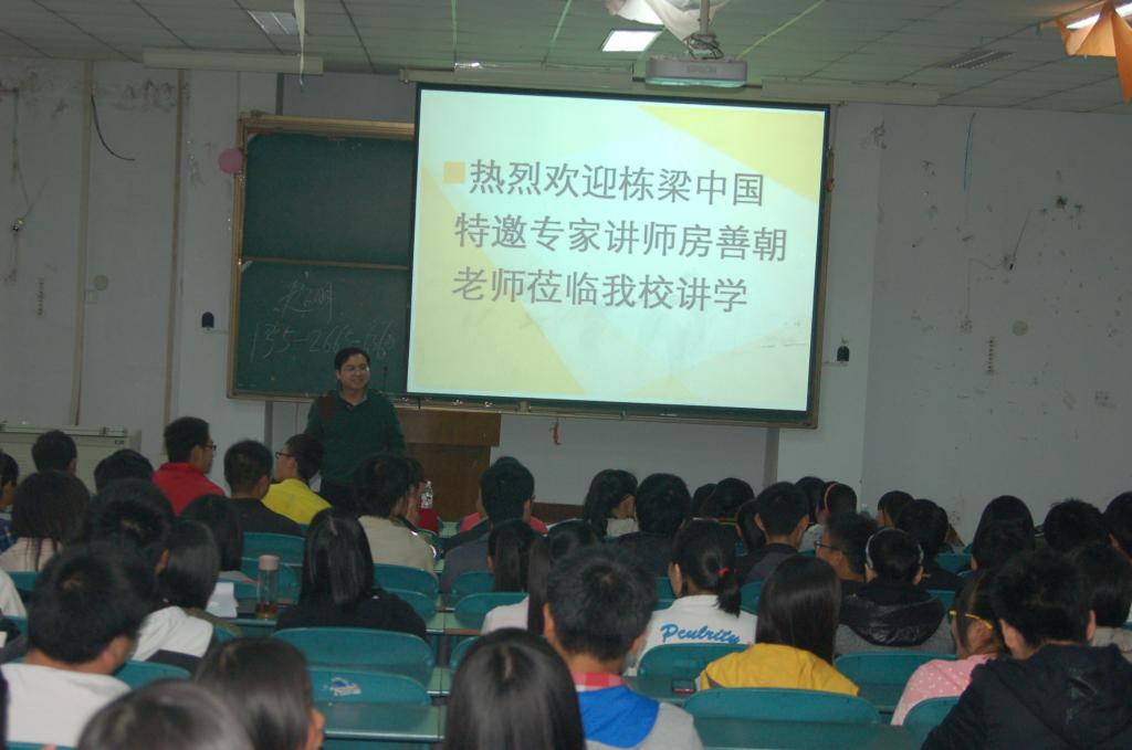 此次活动由一个“拍手”小游戏作为开场,在调动现场同学的积极性的同时也迎来了讲师——房善朝老师。房老师以自己的成长史为例,通过言传身教告诉大家:对于自己的梦想要坚持下去,并为之努力,决不能放弃,并且要想成功就必须有成功的资本,必须善于抓住每一个成功的机会。幽默的语言,充满激情而又分外精彩的演讲赢得了同学们一次又一次热烈的掌声。在讲座即将结束的时候,房老师又送给大家一句话:大学,你要勇于锻炼自己,毕业了,你才有辉煌的成绩,努力就一定成功。在同学们雷鸣般的掌声中房老师结束了此次讲座。