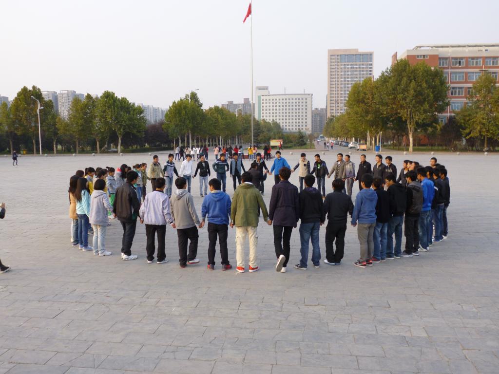 为了进一步提高当代大学生的综合素质,针对大学生活泼好动的特点,数学与信息科学系于10月21日至25日在西区国旗广场、西区篮球场对大一六个班陆续展开了素质拓展活动。