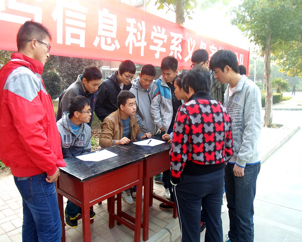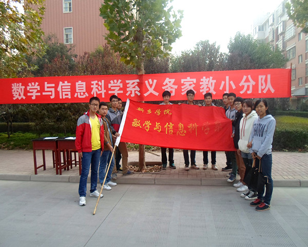 为了培养大学生奉献社会的精神、提高大学生综合素质能力,数学与信息科学系组织义务家教于2013年10月26日上午9:00在新乡学院西区家属院正式启动。辅导员王靓老师、学生会主席彭先耀、团总支副书记邱运博等亲自到场指导工作。