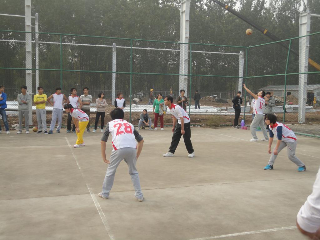 11月6日下午,“2013迎新排球赛”季军争夺战的比赛之物理与电子工程系与数学与信息科学系在西区排球场开展。