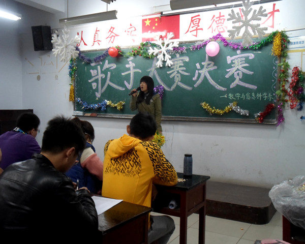 为了丰富在校大学生的课余生活,展现学生的自我风采,提高学生的综合素质,数学与信息科学系于11月19号晚六点在A03-516举办了歌手大赛的总决赛。