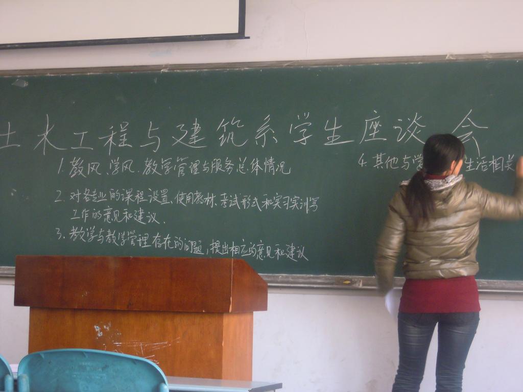 为加强土木工与建筑系的教风、学风建设。土木工与建筑系于11月19日15时在A—09 0309教室召开了学生座谈会。会议由教学秘书畅丽萍老师主持。
