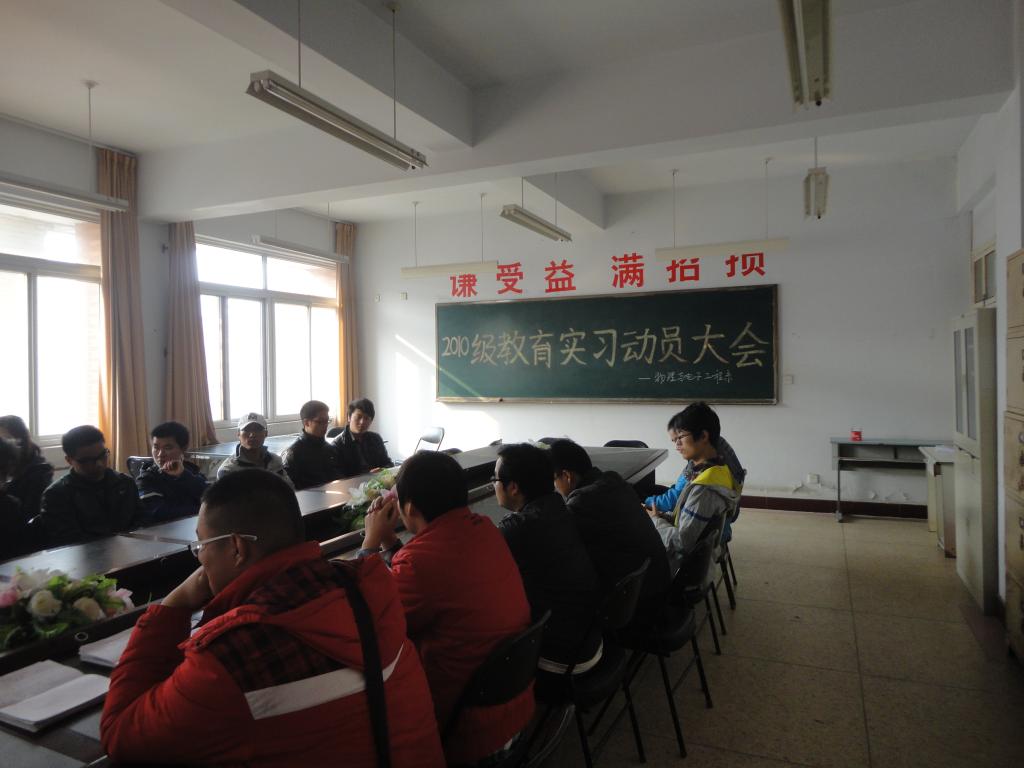 会议伊始,梁彦天主任发表重要讲话,他在讲话中提到:岗前实习作为大学教育中的一项重要环节是十分必要的。一直以来,物理与电子工程系高度秉承“受教育、长才干、做贡献”的宗旨,建立和完善了一批设施齐全,条件一流的实习基地,并在不断地趋于“规范化、阵地化、长期化、有效化”方向发展的同时有效地促进了物理与电子工程系青年学生综合素质的提高,为广大学生锻炼自我、走向就业提供了有效的途径。紧接着,针对此次10 级实习工作开展的具体情况,梁主任作了认真详细的介绍,并希望广大学生要敢于尝试,积极参与,不怕苦,不怕累,在实践中学会创新,在实践中磨砺品行。最后,部分学生对于一些细节问题提出了自己的疑问,梁主任逐一给予了耐心的回答。