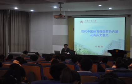 2013年11月26日下午4点,体育系邀请河南师范大学体育学院党委书记、硕士生导师刘献国教授,就“现代中国体育强国梦的内涵及其历史意义”做了一次专题学术讲座。