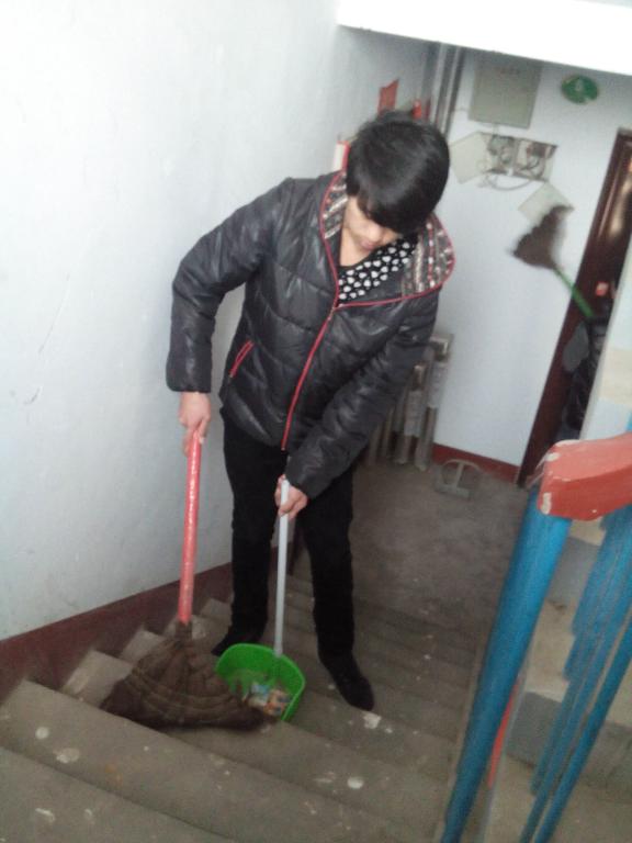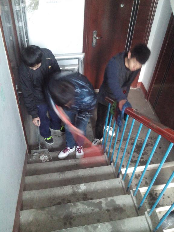 学生们自带了水桶、抹布和扫帚等清扫工具。他们分工明确,相互配合从楼道的高层向下层清扫,并进行洒水。天气虽然冷,但是同学们的热情不减,扫楼梯的扫楼梯,擦栏杆的擦栏杆,他们认真仔细的把楼道的垃圾和栏杆上、墙上的小广告处理的一干二净。此次活动同学们热情积极,不怕苦,不怕累,不怕脏,任劳任怨,为大家创建了一个干净美丽的学习环境和文明校园。