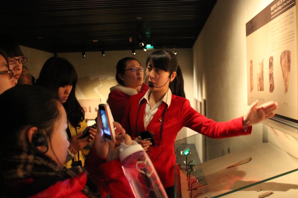 文字博物馆对汉字发展史和中国文字文化做了集中的展示,置身其中,厚重的文化氛围让人感觉像是喝了浓缩果汁,原味甘醇,口齿留香。同学们跟随着讲解员游走在各展厅之间,恍若穿梭于奇妙变幻的历史时空,陶鼎简帛,笔走龙蛇。时光太快,转瞬间已沧海桑田。所幸,历史留下了这些美丽的印迹。正如领队的聂好春老师所说,“平日在课堂上用书本、课件讲课,总有种口说无凭的感觉。让大家走进博物馆看到实物,把学到的历史文献学等知识学以致用,对以后的教学研究都是有很大好处的”。同学们通过在中国文字博物馆的学习考察,加深了对文字文献发展历史的思考,激发了对文字文化深入研究的兴趣,增强了对历史专业的热爱,也多了分直笔书史的责任感。