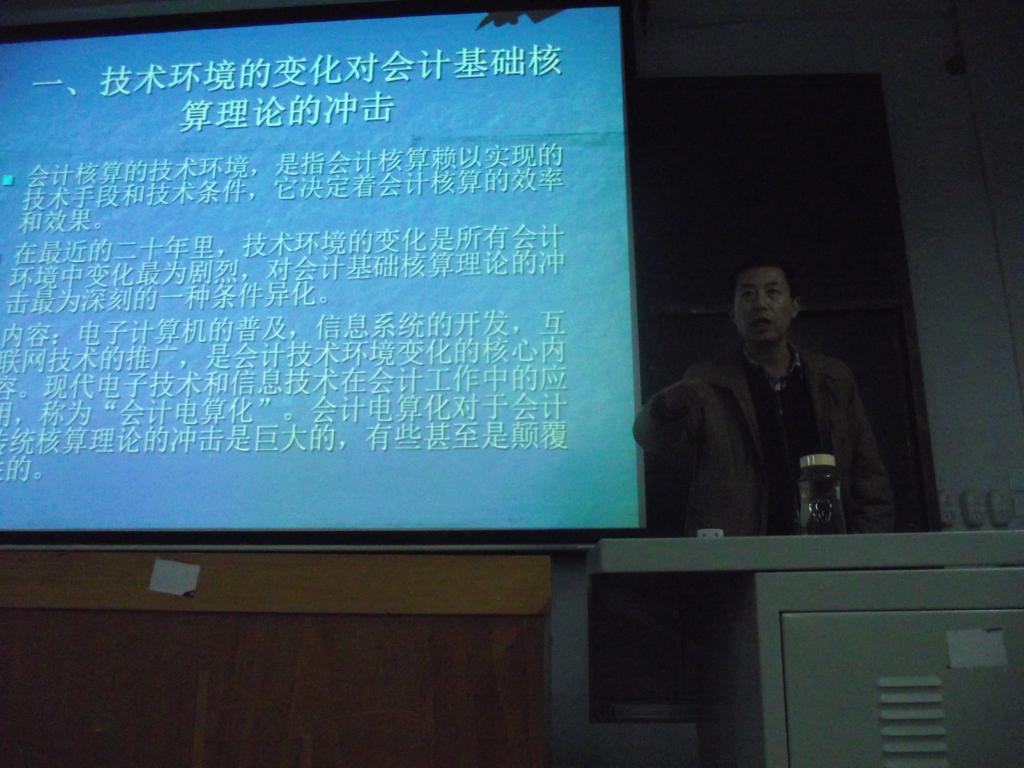 此次讲题为会计环境变化对会计基础核算理论的冲击。刘书记主要分为以下几个方面进行讲解:一、会计电算化简化了账务处理程序理论二、会计电算化简化了存货计价理论三、会计电算化简化了成本核算理论四、经济环境的变化对会计基础核算理论的冲击五、金融环境的变化对会计基础核算理论的冲击六、法律环境的变化对会计核算理论的冲击。