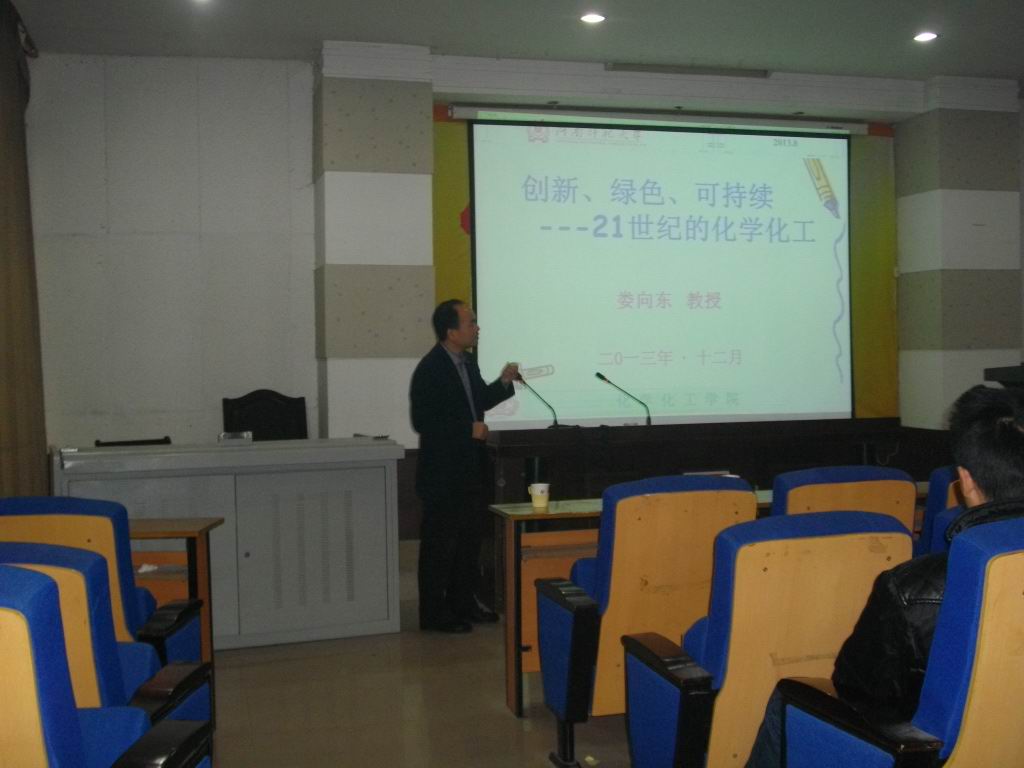 为扩大师生的知识面,启发师生对有关化学和化工问题的思考, 激发教师、学生将所教和所学用于实际的兴趣, 促进两校之间的学术交流与合作,12月16日下午两点,我校特邀河南师范大学博士生导师娄向东教授来我校讲学,化学与化工学院院长陈改荣出席了此次报告会。