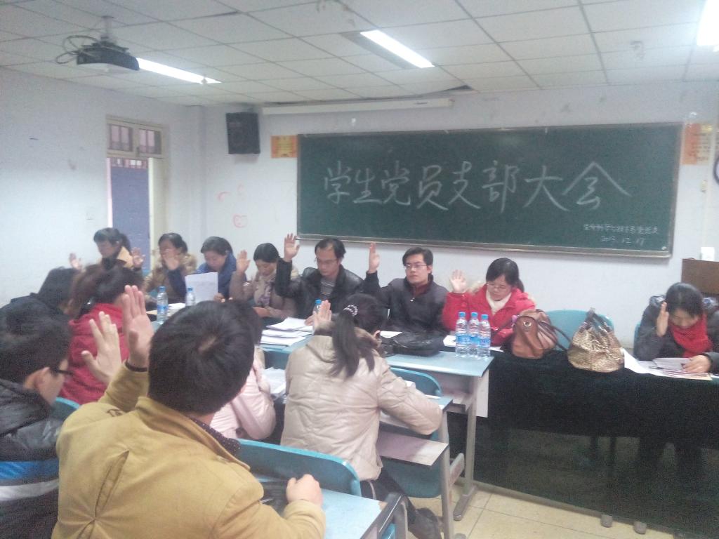 为积极靠拢党,为党注入新生力量,生命科学与技术系于12月17日下午在A13-312教室召开了学生党员支部大会,此次会议主要围绕关于曹攀、邢高功等23位同志转为正式党员和确定2013年下半年入党积极分子名单及颜苏云、史迎慧等12位同学成为中共预备党员这三个问题。出席大会的领导有学生党支部书记刘兴洋刘书记,学生党支部组织委员周会萍老师,学生党支部宣传委员鲜靖苹老师和各级辅导员老师。