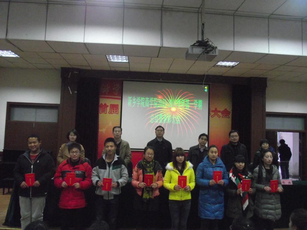 又到了辞旧迎新之时,为了对在本学期表现优秀的个人及团体给予表彰和鼓励,使大家在新的一年里更加的团结,更好的奋斗,12月31日下午5:00,商学院在A01-114报告厅召开了2013-2014学年第一学期总结暨表彰大会。