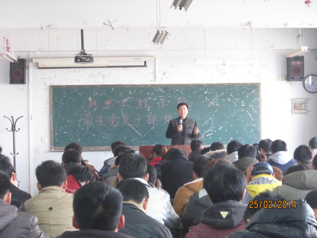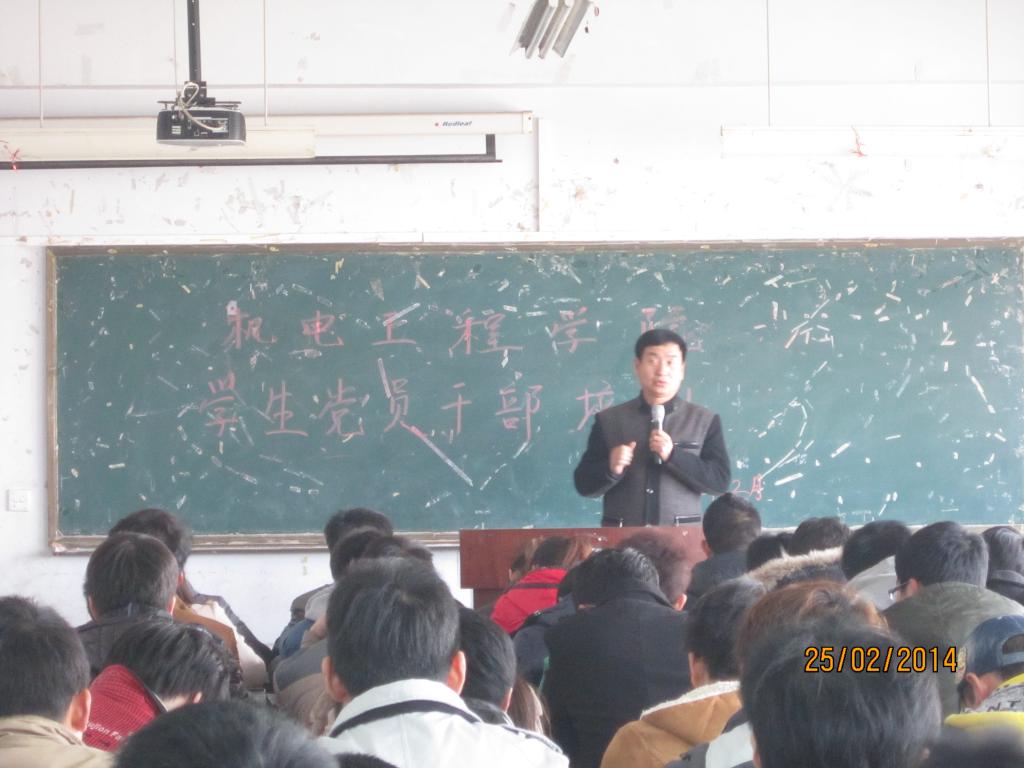 2月25日下午,机电工程学院在A06-512大教室召开了学生党员干部培训暨新学期动员大会,本次培训由党总支副书记王保学主讲。