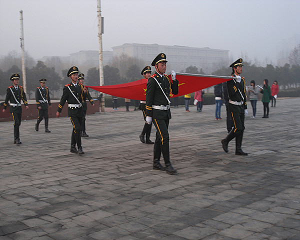 仪式开始,国旗护卫队护送鲜艳的五星红旗进场,全体师生怀着对祖国无限的热爱和崇高的敬意齐唱《中华人民共和国国歌》,行注目礼,五星红旗在朝阳下冉冉升起。学生代表刘欢欢做国旗下讲话,提倡同学们要积极参与到雷锋活动与志愿者活动中去,尽己之力护他人安康。接下来,苏书记对同学们的学习现状作出了深刻而全面的分析。他提醒同学们:人生就像行驶的列车一样,必须严格遵守时间规定,遵守学校纪律,严于律己,努力学习,成就自我。