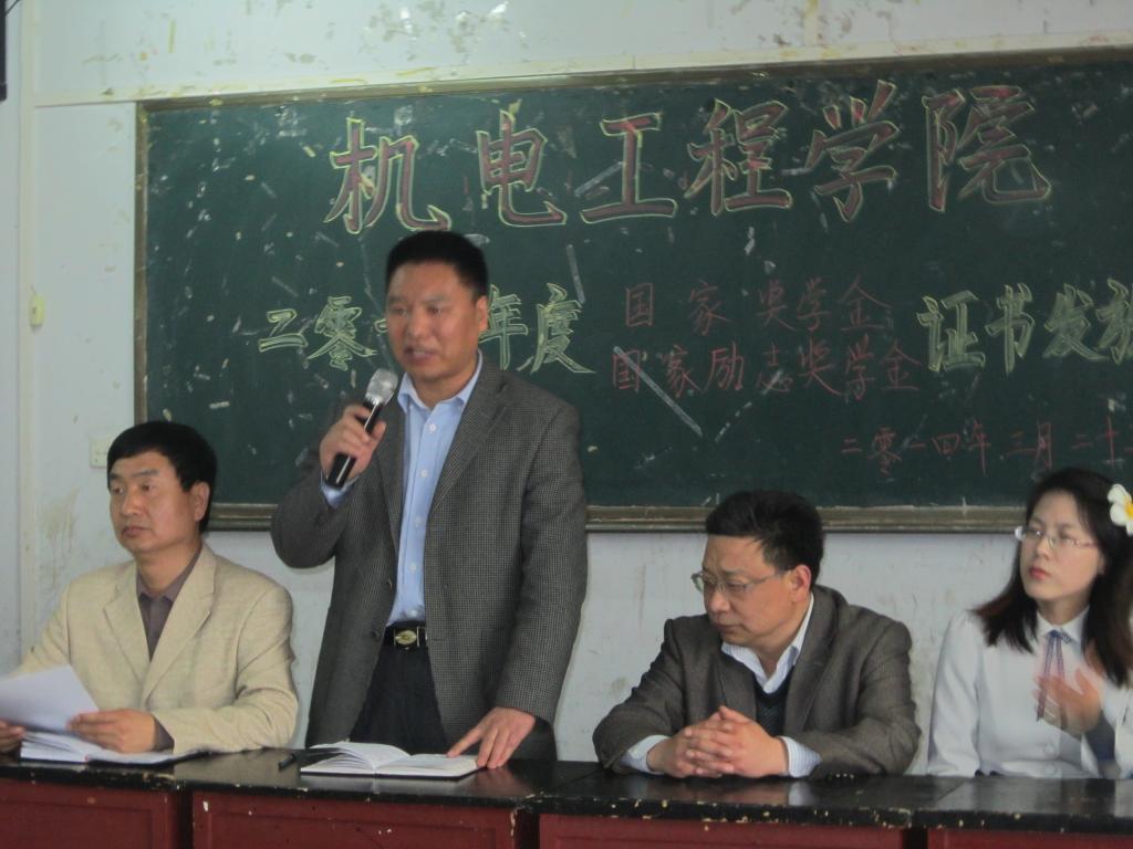 会议上,党总支副书记王保学宣读了荣获国家奖学金及国家励志奖学金的学生名单。紧接着,获奖学生上台领取荣誉证书,作出简短的获奖感言。然后,李书记作出重要讲话。李书记首先对获得奖学金的同学表示热烈祝贺,同时对同学们提出三点要求:要踏实做人、懂得感恩、回报社会、自强不息、自尊自信;努力学习、早日成才、回报社会、回报母校;在学风建设中,要起到模范带头作用。会议在热烈掌声下圆满落下帷幕。