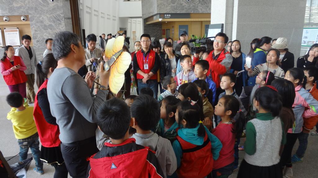 在志愿者的引领下,30余组家庭步入平原博物院活动大厅观看了由新乡市风筝爱好者带来的“鹰击长空”、“燕飞轻舞”等精彩演出。大家为技艺精湛的民俗风筝表演连连叫好,志愿者都在现场维护秩序。接着,志愿者与各组家庭一起在平原博物院南广场空地上放飞“梦”的风筝。起初,孩子们自己放的风筝都飞不高,但是,在家长及志愿者耐心细致的帮助下,孩子们的风筝最终都高高地飘扬在空中。看着孩子及家长们充满幸福的笑容,志愿者们也倍感欣慰。