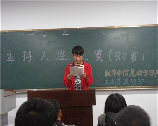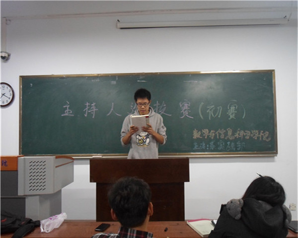 为了丰富大学生的课余文化生活,给大学生打造一个展现风采的舞台,数学与信息科学学院于11月4日下午在A03-103教室举办了主持人大赛初赛。