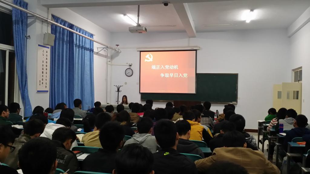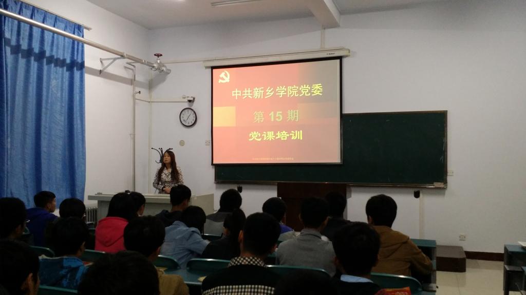 11月4日晚19:00-21:00,我院在A-05教学楼506对我院的61名2014级新生、31名2013级和1名2012级学生进行了第十五期党课培训。本次党课由物理与电子工程学院党总支郭兵书记进行授课。