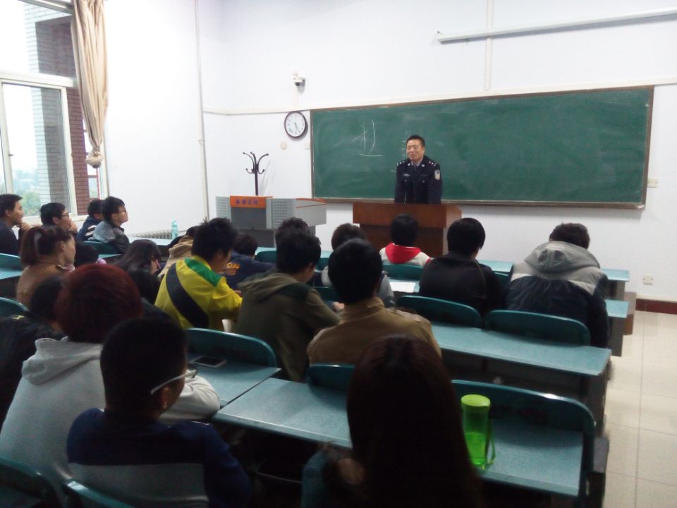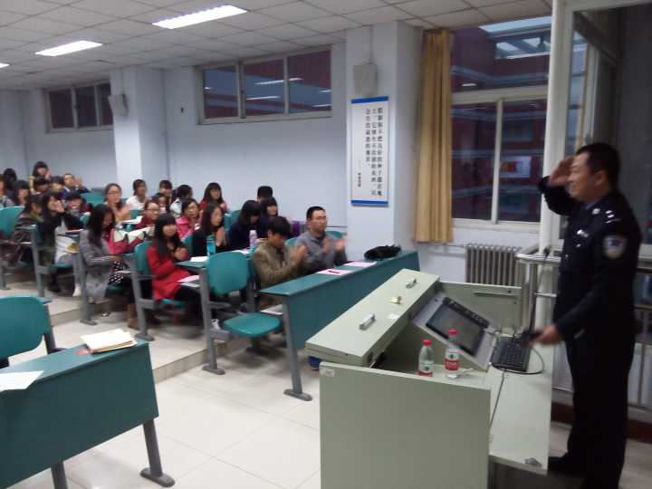 下午3:00讲座正式开始。首先由洪门派出所的两位民警为我院学生每人分发了一封“致新乡学院大学生的一封安全防骗信”。接着,民警刘国华向同学们讲诉了一个关于诈骗的案例,并播放了一段视频为我院学生进行讲析。然后,她又对大学城周围的五所高校安全现状及特点做了详细总结。最后,她根据对近阶段诈骗案件的统计向同学们分析诈骗案中犯罪嫌疑人的主要诈骗手段,并提供了解决防盗、防诈骗、防抢劫等安全隐患的建议。