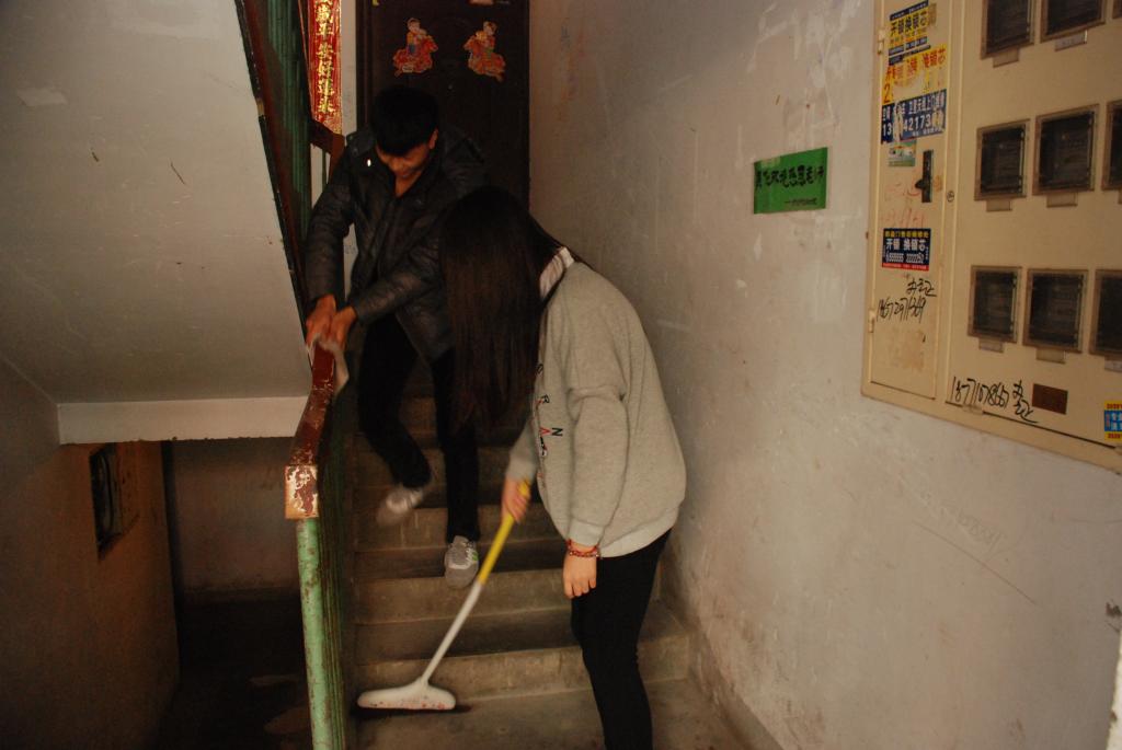 参与此次活动的同学自带了水桶、抹布和扫帚等清扫工具。分工明确,相互配合的从楼道的高层向下层清扫,认真清理。天气虽然冷,但是同学们的热情不减,认真仔细的把隐藏在楼道的垃圾和栏杆上,墙上的小广告清理的一干二净。参与此次活动,彰显了同学们不怕苦,不怕累,不怕脏,任劳任怨的精神。为大家创建了一个干净美丽的学习环境和文明校园。