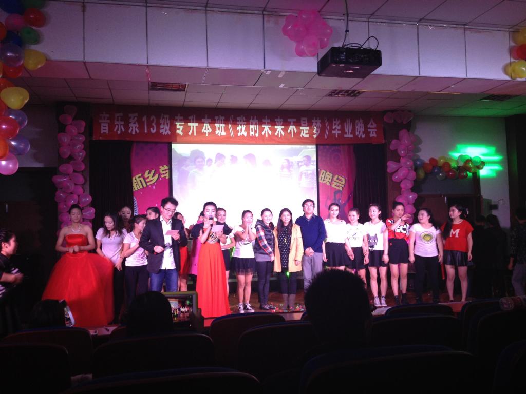 11月10日晚上19:00我系2013级专升本班毕业晚会在A01一号报告厅成功举办。莅临本次晚会领导有:党总支书记陈华书记、团总支书记田亮老师及刘夏宁老师、蒋将老师、刘晶老师。