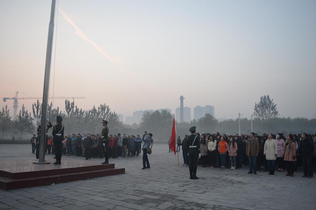 清晨的云雾挡住了阳光,但却遮不住国旗的红艳。11月17日早晨6:30,艺术学院全体学生及教师代表一齐聚在国旗广场,参加了艺术学院举行的升国旗仪式。